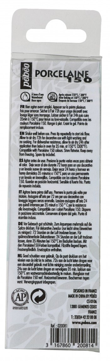 – For a user who wishes to apply on the same piece the felts with paint or Porcelain 150 Relief Rings, Pebeo recommends to fire the decorated object according to the instructions mentioned above.